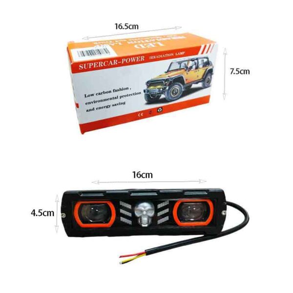 Δώστε στο όχημά σας μοναδικό στυλ και ισχυρό φωτισμό με τον προβολέα LED ισχύος 18W σε εντυπωσιακό σχέδιο με κρανίο στο κέντρο. Κατάλληλος για αυτοκίνητα, τζιπ, μηχανές και off-road οχήματα.