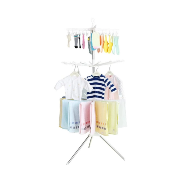 Πτυσσόμενη απλώστρα δαπέδου 3 ορόφων. Η απλώστρα δαπέδου διπλώνει και ξεδιπλώνει, μεταφέρεται και αποθηκεύεται εύκολα χωρίς να καταλαμβάνει πολύ χώρο. Ιδανική λύση για να απλώνετε τα ρούχα σας.
