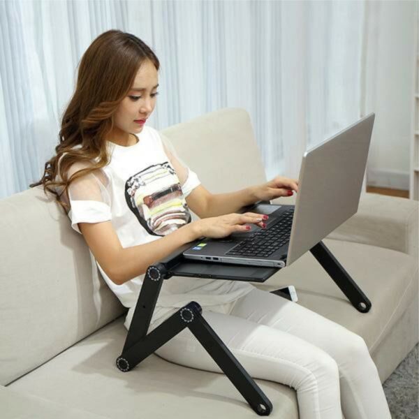 Πτυσσόμενη βάση-τραπεζάκι για laptop με ανεμιστήρες. Η μεταλλική επιφάνεια παρέχει εξαιρετική ροή αέρα. Αποφεύγει την υπερθέρμανση. Διαθέτει 2 ανεμιστήρες. Διαστάσεις βάσης πλάτος 48cm, μήκος 26,5cm και ύψος 48cm (το ύψος είναι ρυθμιζόμενο και μπορείτε να το ρυθμίσετε). Κατάλληλη για laptop. Διαθέτει έξτρα χώρο για το ποντίκι. Ιδανική για τον καναπέ, το κρεβάτι, το τραπέζι αλλά και πολλούς άλλους χώρους.