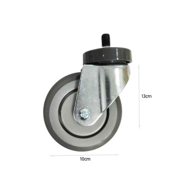 Δώστε ευκινησία και σταθερότητα στα έπιπλά σας με αυτήν την ανθεκτική ρόδα. Διαθέτει στιβαρό μεταλλικό στήριγμα και σπείρωμα για εύκολη τοποθέτηση, ενώ ο τροχός είναι κατασκευασμένος από ανθεκτικό καουτσούκ/πλαστικό για ομαλή κύλιση χωρίς φθορές στο δάπεδο. Ιδανική επιλογή για καρέκλες, τραπέζια, καρότσια και επαγγελματικά έπιπλα.