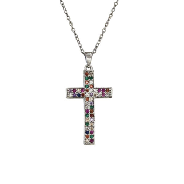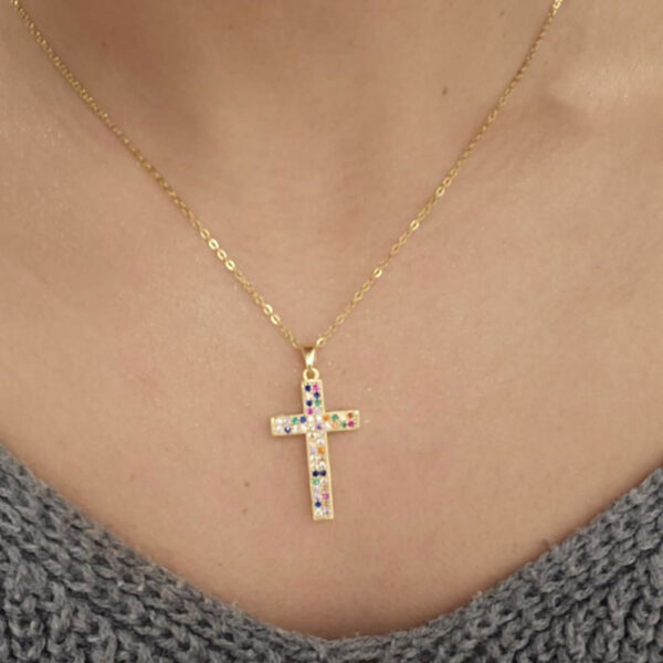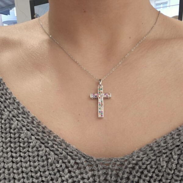 Γυναικείος Σταυρός Με Χρωματιστές Πέτρες Σε Χρυσό Και Ασημί.