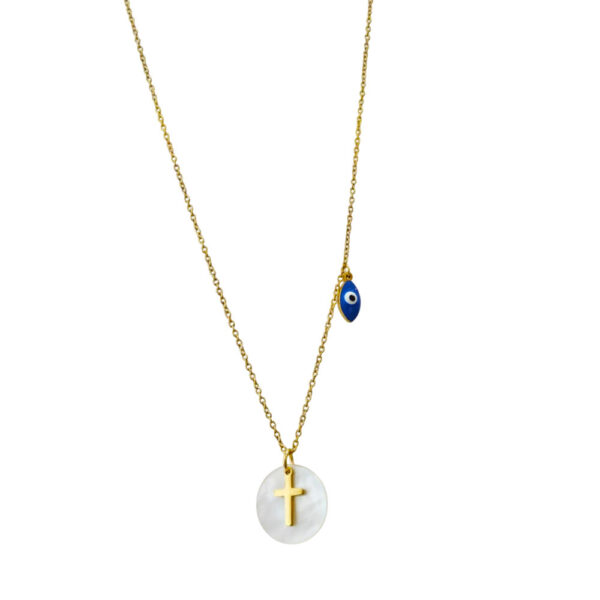ς Σταυρος Απο Ανοξείδωτο Ατσάλι Με Κρεμαστό Φλουρί Απο Φίλντισι Και Ματάκι – Ασημί