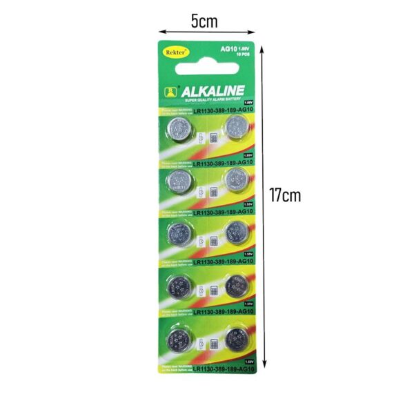 Σετ αλκαλικών μπαταριών LR1130 1.5V, ιδανικό για μικρές ηλεκτρονικές συσκευές όπως ρολόγια, αριθμομηχανές, παιχνίδια, φακούς και μετρητές. Οι μπαταρίες αυτές προσφέρουν σταθερή τάση και μεγάλη διάρκεια ζωής, εξασφαλίζοντας αξιόπιστη λειτουργία των συσκευών σας.
