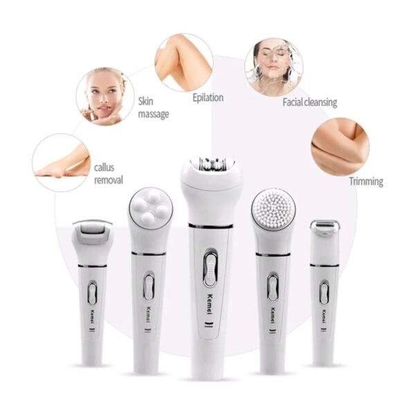 Αποτριχωτική μηχανή για όλο το σώμα. Μια εύκολη και γρήγορη λύση. Μικρό μέγεθος για εύκολη μεταφορά. Ισχύς 3W. Λειτουργεί με επαναφορτιζόμενη μπαταρία. Διαθέτει 5 διαφορετικές κεφαλές. Ιδανική για υγρή και ξηρή χρήση. Κεφαλή ξυρίσματος, μασάζ σώματος και προσώπου, αφαίρεσης κάλων και βούρτσα καθαρισμού δέρματος.