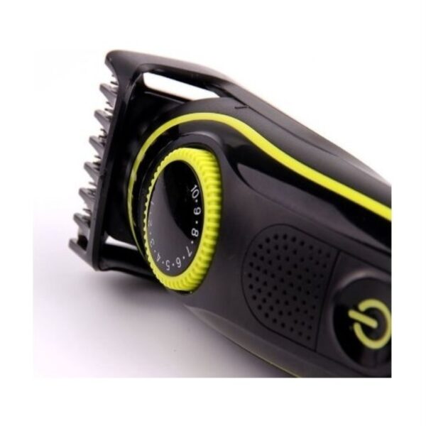 Επαναφορτιζόμενη κουρευτική μηχανή. Kατάλληλη για χρήση σε περιοχές όπως τα μαλλιά, τα γενιά και το σώμα, ενώ ταυτόχρονα επιτρέπει πιο λεπτομερές κούρεμα σε μικρές περιοχές όπως τα αυτιά και τη μύτη. Λειτουργεί με μπαταρία. Χρόνος πλήρης φόρτισης 1.5 ώρες. Αυτονομία 90 λεπτά. Διαθέτει 5 διαφορετικές κεφαλές. Διαστάσεις 18x4cm. Περιλαμβάνει καλώδιο και χτένα.
