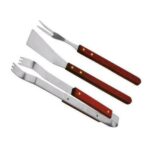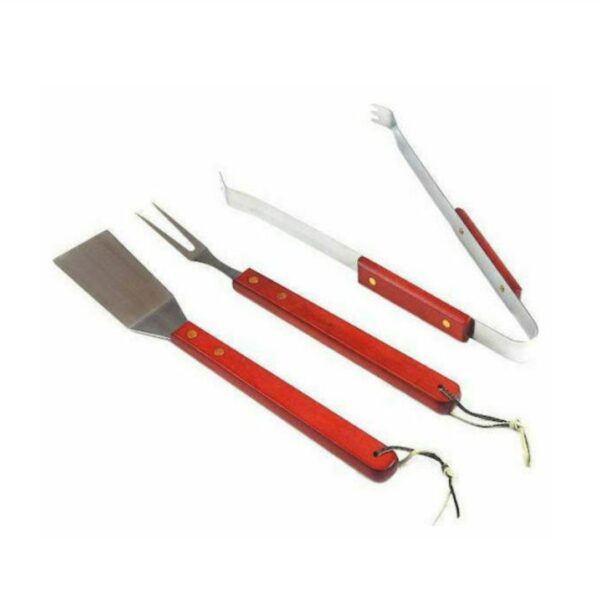 Σετ εργαλείων BBQ σπάτουλα, πιρούνα και τσιμπίδα. Τα εργαλεία είναι από ανοξείδωτο ατσάλι, μη τοξικά, άοσμα και αντιδιαβρωτικά. Μήκος 34-35 εκατοστά.