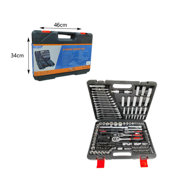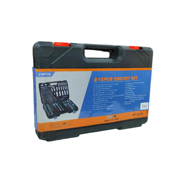 Σετ εργαλείων 216 τεμαχίων. Μπορούν να χρησιμοποιηθούν σε οποιοδήποτε όχημα και οικιακή χρήση. Ανθεκτικά στη διάβρωση και τη σκουριά για μεγάλη διάρκεια ζωής. Εύκολη αναγνώριση όλων των εργαλείων, αφού το κάθε ένα έχει τη δική του ξεχωριστή θέση μέσα στη βαλίτσα. Η πληθώρα των εργαλείων καλύπτει σχεδόν κάθε ανάγκη. Αποθήκευση με πλαστική θήκη, η οποία επιτρέπει την μεταφορά εργαλείων.