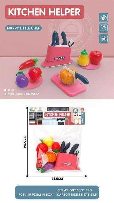 Παιδικό σετ κοπής τροφίμων με αξεσουάρ, σκεύη και τρόφιμα, σε υπέροχο πολύχρωμο σχεδιασμό.