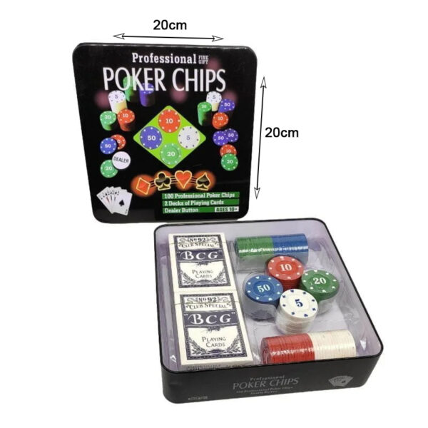 Σετ Πόκερ Με 100 Μάρκες & 2 Τράπουλες Σε Μεταλλικό Κουτί – Professional poker chips