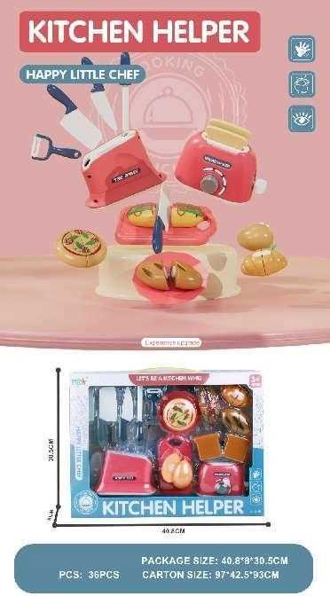Παιδικό σετ κουζίνας με φρυγανιέρα, αξεσουάρ, σκεύη και τρόφιμα, σε υπέροχο πολύχρωμο σχεδιασμό.