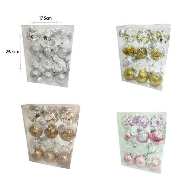Σετ από εντυπωσιακές χριστουγεννιάτικες μπάλες σε διάφορα σχέδια και χρώματα για να στολίσετε το δέντρο και τον χώρο σας με λάμψη και κομψότητα. Το πακέτο περιλαμβάνει γυαλιστερές, διάφανες και διακοσμημένες μπάλες που ταιριάζουν σε κάθε στυλ διακόσμησης.