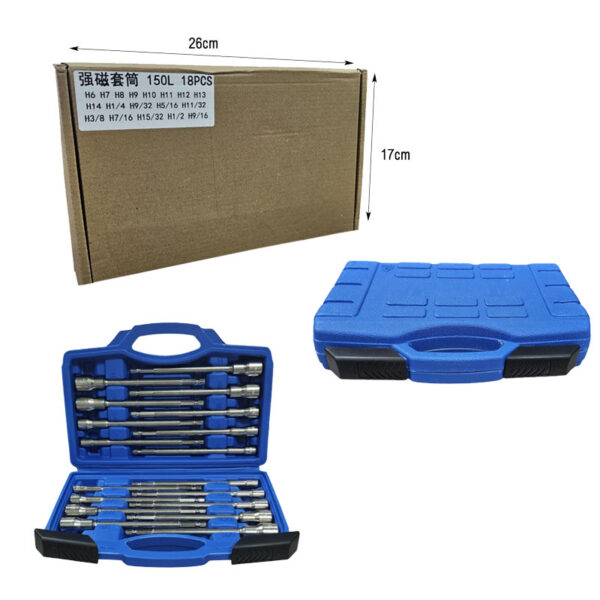 Πρακτικό σετ με 18 τεμάχια μαγνητικές μύτες καρυδάκια μήκους 150mm, κατάλληλες για κατσαβίδια, δραπανοκατσάβιδα και εργαλεία με εξάγωνη υποδοχή. Κατασκευασμένες από ανθεκτικό ατσάλι, με μαγνητική κεφαλή για σταθερό κράτημα βιδών και παξιμαδιών κατά τη χρήση. Το σετ παρέχεται σε ανθεκτική πλαστική κασετίνα αποθήκευσης με εσωτερική σήμανση για εύκολη οργάνωση και μεταφορά.