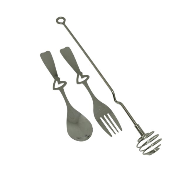 Σετ περιλαμβάνει 1 κουτάλι, 1 πιρούνι και 1 αναδευτήρα. Διαστάσεις Κουτάλι, Πιρούνι 14x3cm. Διαστάσεις αναδευτήρα 24×2.5cm.