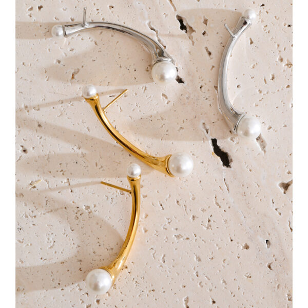 Κομψά ατσάλινα σκουλαρίκια με μοντέρνο κυρτό σχέδιο και διακριτικές πέρλες στις άκρες. Διαθέσιμα σε χρυσό και ασημί χρώμα, προσθέτουν μια διαχρονική πινελιά πολυτέλειας σε κάθε εμφάνιση. Ιδανικά για καθημερινή χρήση αλλά και για πιο ιδιαίτερες περιστάσεις, χάρη στη minimal και ταυτόχρονα εκλεπτυσμένη αισθητική τους.✨ Υλικό: Ανοξείδωτο ατσάλι✨ Διαθέσιμα χρώματα: Χρυσό / Ασημί✨ Υποαλλεργικά & ανθεκτικά στη φθορά