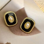 Σκουλαρίκια Ατσάλινα Καρφωτά Με Πέτρα – Χρυσό Μαύρο