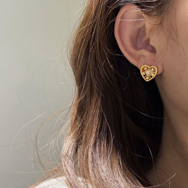 Σκουλαρίκια Καρδιά από Ατσάλι με Ζιργκόν – Χρυσό