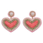 Σκουλαρίκια Καρφωτά Σε Σχήμα Καρδιάς Με Χάνδρες – Ροζ