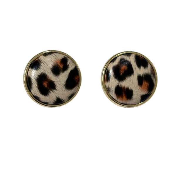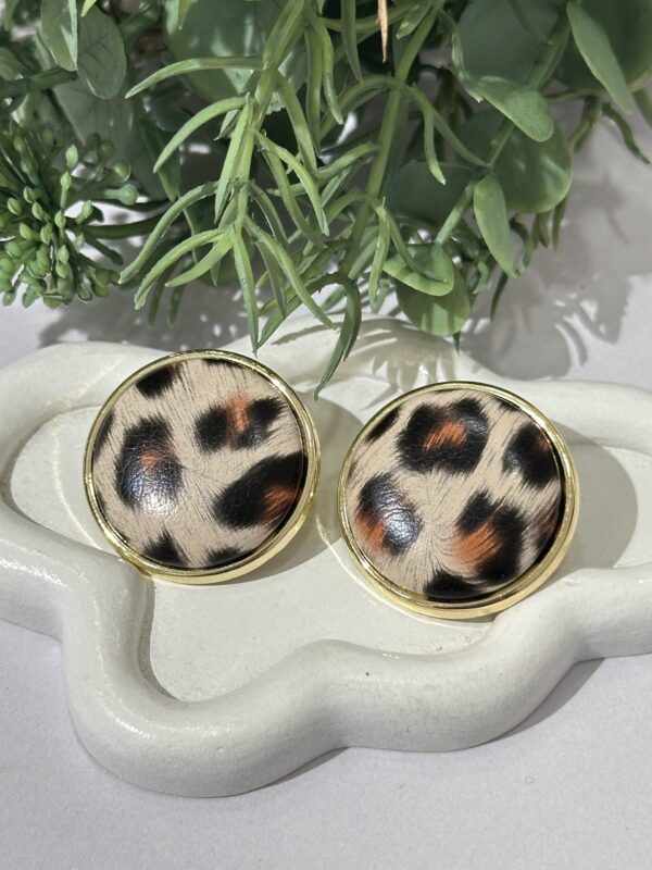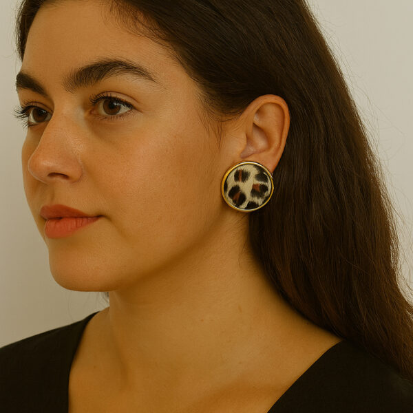 Σκουλαρίκια Στρογγυλά με Δερμάτινο Leopard & Μεταλλικό Περίγραμμα
