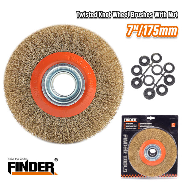 Συρματόβουρτσα για δίδυμο τροχό μεγέθους 7″/175mm, Finder, με σετ δαχτυλίδια προσαρμογής.