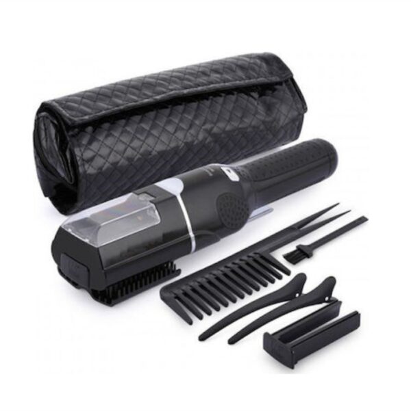 Συσκευή αφαίρεσης ψαλίδας. Αφαιρεί τις ταλαιπωρημένες και εύθραυστες άκρες χωρίς να μειώνει το μήκος των μαλλιών. Θήκη μεταφοράς του μηχανήματος και των εξαρτημάτων. Περιλαμβάνει χτένα, δύο κοκαλάκια διαχωρισμού τούφας και βουρτσάκι καθαρισμού.
