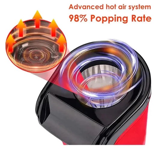 Μηχανή Ποπκορν με πρωτοποριακό σχεδιασμό και τεχνολογία νέας γενιάς με ομοιόμορφη ροή θερμού αέρα, που φτιάχνει τα αγαπημένα σας ποπκορν σε λίγα λεπτά, τραγανά και χωρίς απώλειες και καψίματα. Δεν χρειάζεται προσθήκη λαδιού και έτσι μπορείτε να φτιάξετε και να απολαύσετε το αγαπημένο σας σνακ χωρίς τύψεις!