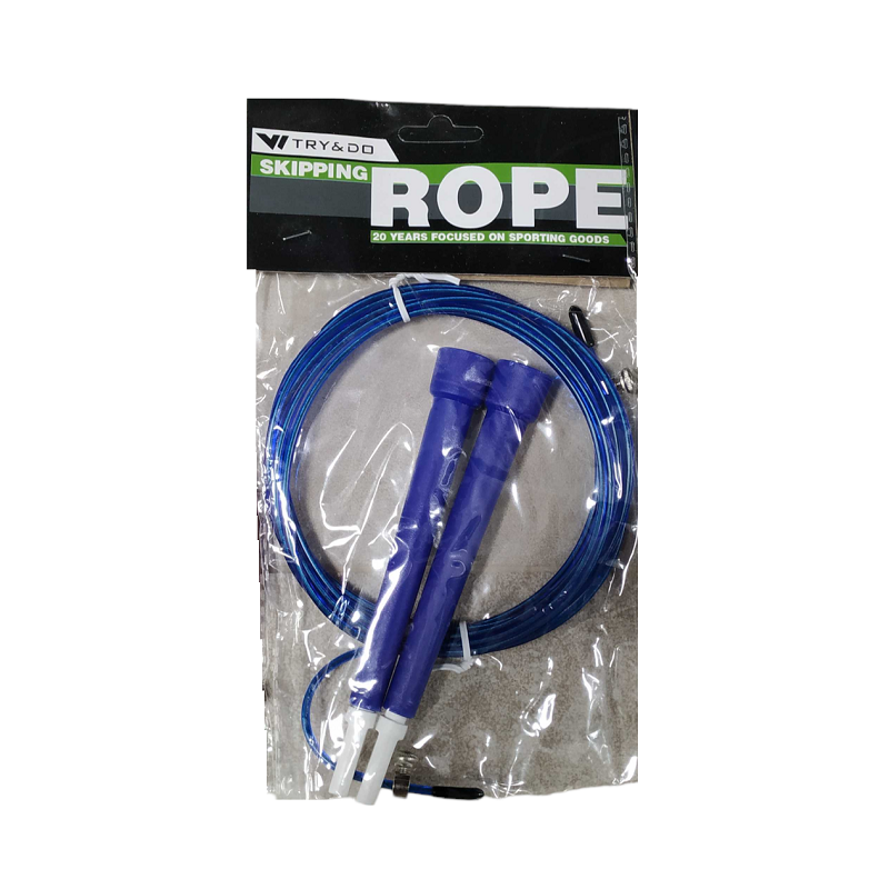 Σχοινάκι γυμναστικής εργονομικό και εξαιρετικά ελαφρύ, ιδανικό για υψηλές αποδόσεις στην προπόνηση. Με ομαλή περιστροφή, κατασκευασμένο από υλικά υψηλής ανθεκτικότητας, αποτελεί ιδανική επιλογή για αρχάριους χρήστες ή και προχωρημένους. Ενδείκνυται για έντονη, συχνή χρήση. *Συνιστάται η χρήση σε λείες επιφάνειες. Μεταλλικές Λαβές. Λεπτό μεταλλικό συρματόσχοινο με κάλυμμα. Μήκος: 3m. Ρυθμιζόμενο μήκος με βίδες.