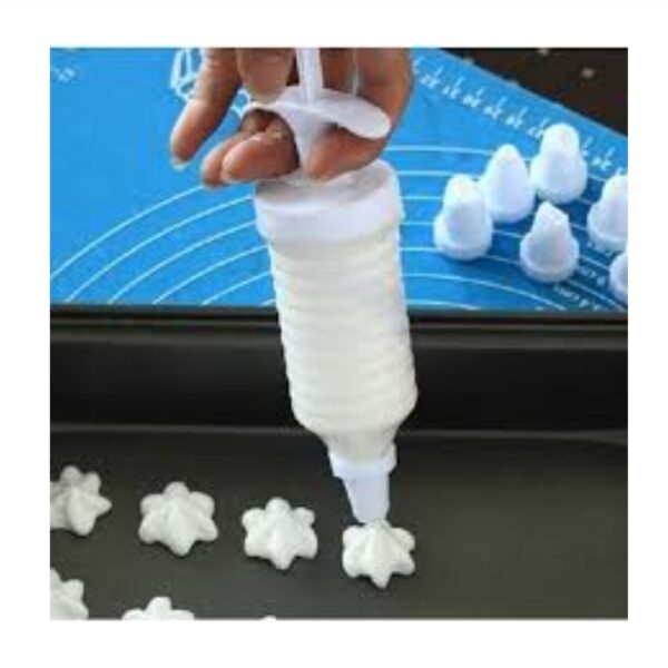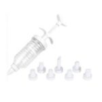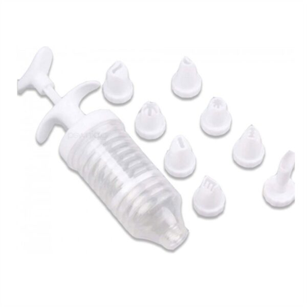 Κορνέ ζαχαροπλαστικής σε σχήμα σύριγγας. Διαθέτει έμβολο και 8 ακροφύσια, σε διάφορα σχέδια. Ιδανικό για την κουζίνα σας. Είναι κατάλληλο για να γαρνίρετε και να διακοσμήσετε το γλυκό και το φαγητό με παχύρρευστα υλικά.