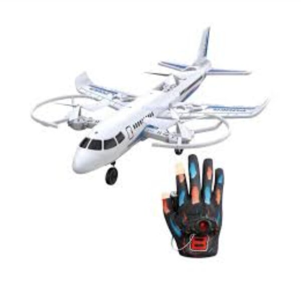 Τηλεκατευθυνόμενο αεροπλάνο με γάντι. Διαθέτει γάντι χειριστήριο για την λειτουργία του. Κατάλληλο για ηλικία 14 ετών και πάνω. Διαστάσεις 38x25cm.