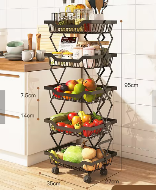 Μεταλλική ραφιέρα πενταώροφη, με ρόδες για εύκολη μετακίνηση. Πτυσσόμενη για να μην καταλαμβάνει χώρο όταν δεν χρησιμοποιείται, με εργονομικό σχεδιασμό για εύκολη καθημερινή χρήση.