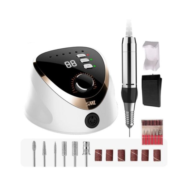 Τροχός νυχιών για μανικιούρ-πεντικιούρ. Διαθέτει 6 διαφορετικές κεφαλές. Αφαιρεί το gel, το βερνίκι νυχιών ή τα πετσάκια. Τάση 110-220V. Στροφές 25000-35000PRM. Διαθέτει διακόπτη ρύθμισης ταχύτητας. Διαθέτει στυλό και πετάλ.