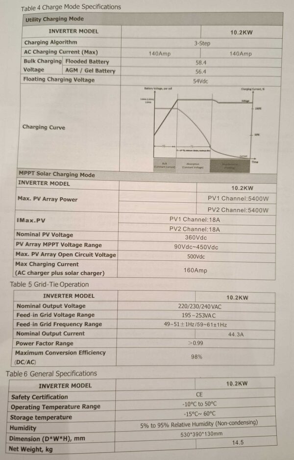 Υβριδικό Inverter καθαρού ημιτόνου – 10.2KW – 819423