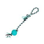 Παιχνίδι σκύλου σχοινί με μασητική μπάλα, από ελαστικό, ανθεκτικό, μη τοξικό πολυεστέρα, ιδανικό για παιχνίδια τραβήγματος/αντίστασης ενώ παράλληλα βοηθά στην υγιεινή στόματος του σκύλου σας καθώς καθαρίζει ήπια και απασχολεί τα δόντια του. Συνολικό μήκος: 48cm.