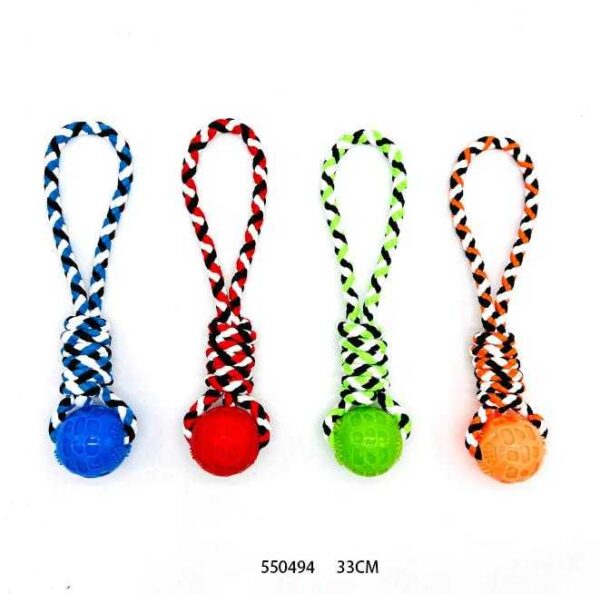 Υφασμάτινο παιχνίδι σκύλου σχοινί με μπάλα TPR – 33cm – 12pcs – 550494