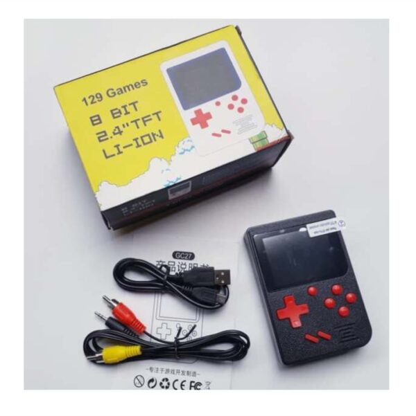 Φορητή κονσόλα παιχνιδιών με 129 παιχνίδια, είναι πολύ εύκολο στη μεταφορά του. Οθόνη 2.4 inch υψηλής ευκρίνειας. Μεγάλη επαναφορτιζόμενη μπαταρία λιθίου. Καλώδιο AV για σύνδεση στην τηλεόραση και καλώδιο φόρτισης USB.