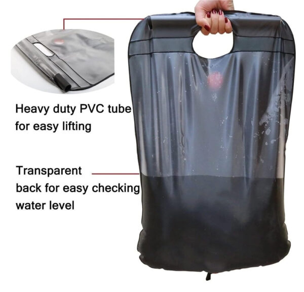 Πρακτική φορητή ντουζιέρα ιδανική για camping, πεζοπορία ή άλλες υπαίθριες δραστηριότητες. Διαθέτει μεγάλη χωρητικότητα νερού 20 λίτρων ενώ χάρη στο υλικό κατασκευής της, το νερό θερμαίνεται χρησιμοποιώντας την ηλιακή ενέργεια.