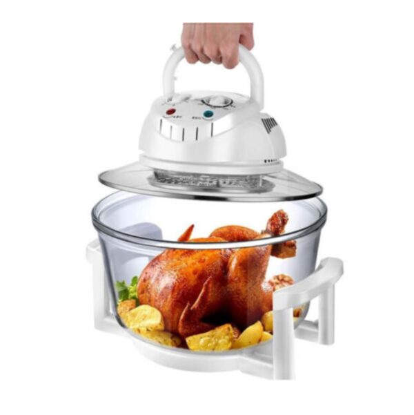 Φριτέζα αέρος δεν χρησιμοποιεί λάδι ή μαγειρικό λίπος για το μαγείρεμα των τροφίμων, χρησιμοποιεί ζεστό αέρα. Έρχεται σε γυάλινο μπολ. Μπορείτε να μαγειρέψετε φαγητά που απαιτούν διαφορετικές θερμοκρασίες ψησίματος. Με τον κάδο των 12 λίτρων, μπορείτε να μαγειρέψετε άνετα για εσάς και την οικογένειά σας. Τάση 220V, ισχύς 1300W, μέγεθος 362x362x230mm.