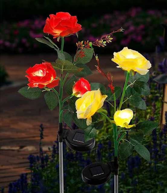 Φωτιζόμενα διακοσμητικά λουλούδια LED με ηλιακό πάνελ φόρτισης και ενσωματωμένη επαναφορτιζόμενη μπαταρία, ιδανικά διακοσμητικά για χρήση σε σημεία που δεν έχουν εύκολη πρόσβαση σε ηλεκτρικό ρεύμα, καθώς τοποθετούνται και χρησιμοποιούνται εξολοκλήρου ασύρματα.