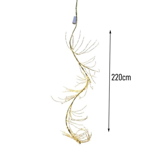 Το φωτιζόμενο χριστουγεννιάτικο κλαδί γκλίτερ σε χρυσό χρώμα με 400 θερμά LED είναι μια κομψή και εντυπωσιακή επιλογή για τη γιορτινή σας διακόσμηση. Με μήκος 220cm, χαρίζει μοναδική λάμψη και πολυτέλεια σε κάθε χώρο, δημιουργώντας ζεστή και φιλόξενη ατμόσφαιρα.