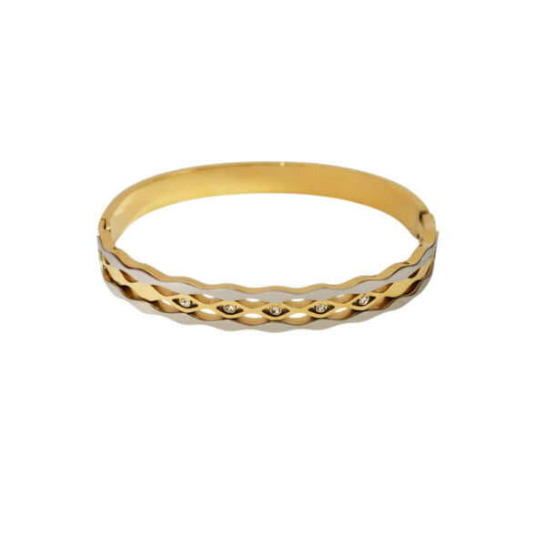 Χειροπέδα Απο Ανοξείδωτο Ατσάλι Δίχρωμη Με Πέτρες Ζιργκόν