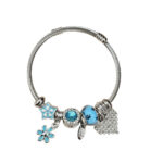 Χειροπέδα Ατσάλινη Με Χάνδρες Και Καρδιά – Ασημί Μπλε