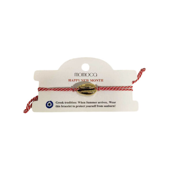 Γυναικείο βραχιόλι μαρτάκι, επιχρυσωμένο με κορδόνι με σχέδιο κοχύλι.