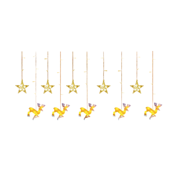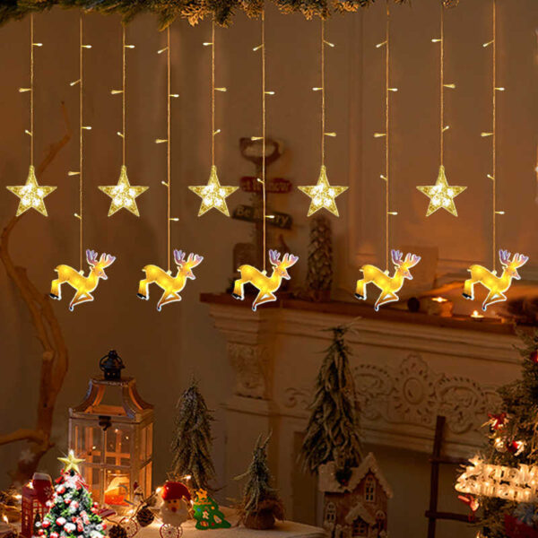 Χριστουγεννιάτικα διακοσμητικά φώτα LED τύπου κουρτίνα με σχέδιο τάρανδοι και αστέρια.
