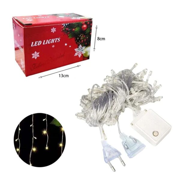 Χριστουγεννιάτικα Λαμπάκια Κουρτίνα LED 100L Θερμό Χρώμα με Διαφανές Καλώδιο 3m 40x50x60cm – Christmas lights LED warm light