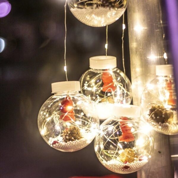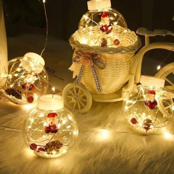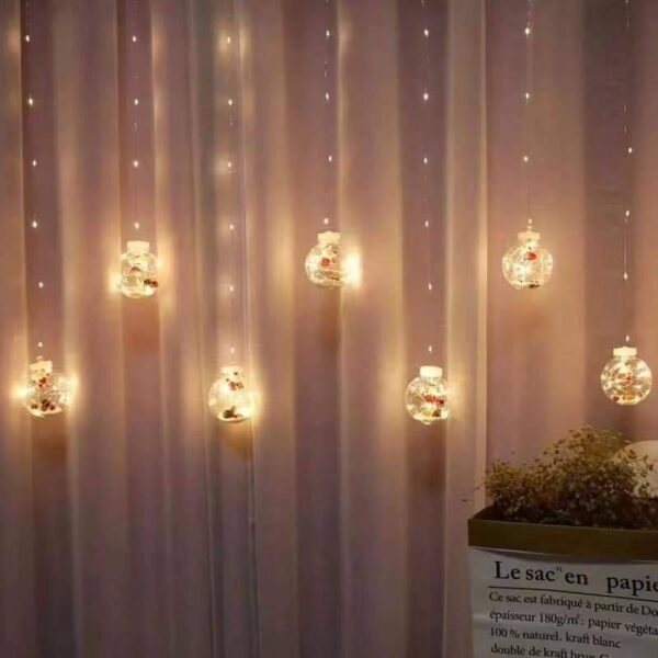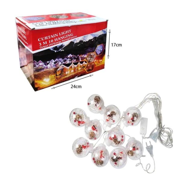 Χριστουγεννιάτικα Φωτάκια Κουρτίνα 10led Άγιος Βασίλης Διάφανες Μπάλες Θερμό Χρώμα 3M – Christmas curtain light