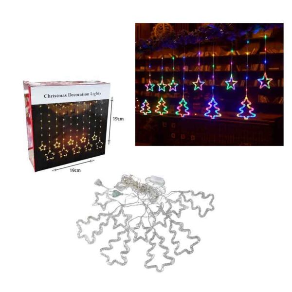 Χριστουγεννιάτικα Φωτάκια Κουρτίνα Δεντράκια & Αστεράκια Πολύχρωμα 10L 3M – Christmas decoration lights RGB