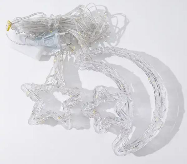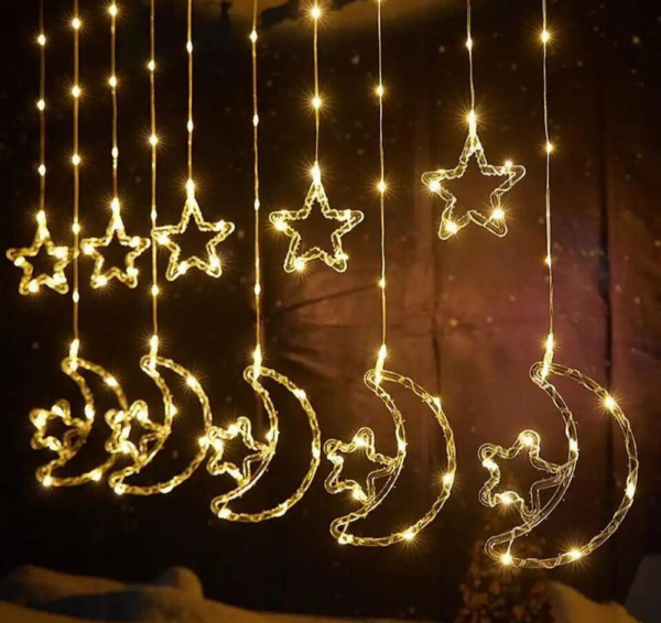 Χριστουγεννιάτικα διακοσμητικά φώτα LED τύπου κουρτίνα με σχέδιο. Χρώμα φωτισμού: Θερμό λευκό.
