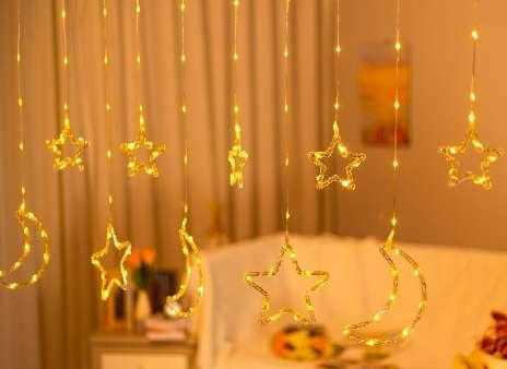 Χριστουγεννιάτικα διακοσμητικά φώτα LED τύπου κουρτίνα με σχέδιο. Χρώμα φωτισμού: θερμό λευκό.