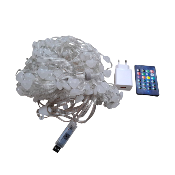 Χριστουγεννιάτικα φωτάκια LED τύπου κουρτίνα, με λαμπάκια σε σχήμα καρδιάς,