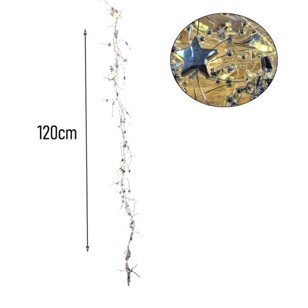 Χριστουγεννιάτικη Φωτιζόμενη Ασημένια Γιρλάντα με Αστέρια και Πέρλες 120cm – Christmas Lighted Garland with Stars and Pearls