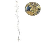 Εντυπωσιακή χριστουγεννιάτικη φωτιζόμενη γιρλάντα με χρυσά αστέρια και πέρλες. Διαθέτει ενσωματωμένα λαμπάκια που δημιουργούν μια ζεστή, γιορτινή ατμόσφαιρα και χαρίζουν λάμψη σε κάθε σημείο του σπιτιού. Ιδανική για στολισμό δέντρου, τζακιού, τραπεζιού ή καθρέφτη.